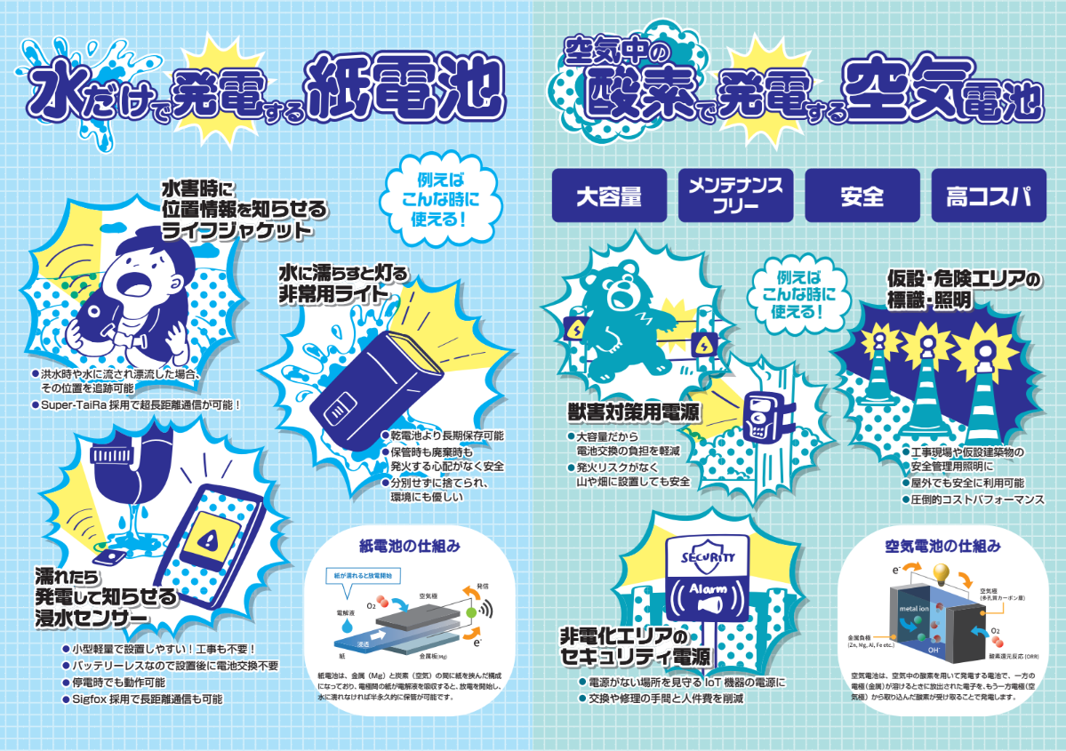 The company will present long-lasting and safe battery solutions for disaster and emergency use, featuring metal-air battery technology with high storability, safety, and environmental performance as a new option for emergency power supply.